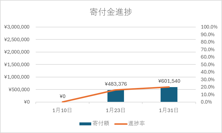 1月31日現在の寄付額をお伝えします。